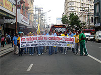 Após rejeitar, em assembleia, a proposta apresentada pelos empresários, a categoria saiu em passeata pela pista central da avenida Rio Branco e pela avenida Getúlio Vargas. "Queremos mexer com o brio daqueles que estão trabalhando e chamar a atenção da população para o que está acontecendo em nossa cidade", destacou Avezani.