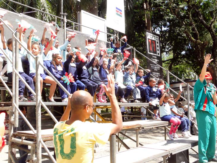 Crianças de escolas municipais de Juiz de Fora participam de atividades educativas durante a Semana Nacional do Trânsito. Na manhã desta quarta-feira, cerca de 35 alunos da Escola Municipal Afonso Maria de Paula, do bairro Santa Cruz, todos com idade de cinco anos, participaram da "Observação de Travessia". O evento é feito em uma arquibancada montada no Parque Halfeld, no cruzamento com a avenida Rio Branco, onde os alunos observam as atitudes de pedestres e motoristas, e aprovam ou reprovam as ações, conforme as leis de trânsito. A atividade ocorre, também, nesta quinta-feira, 22 de setembro. Ao todo, serão seis escolas participantes.