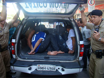 O automóvel foi deixado na avenida Brasil, entre o Clube Tupynambás e o Matadouro Municipal. Durante a busca, os autores chegaram a trocar tiros com a PM, causando a quebra do para-brisa de uma viatura, o que feriu levemente um dos policiais. Foram utilizadas entre seis e oito viaturas da PM, além de motocicletas e do helicóptero Pégasus.