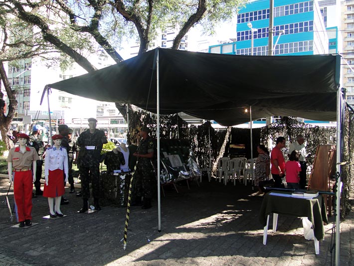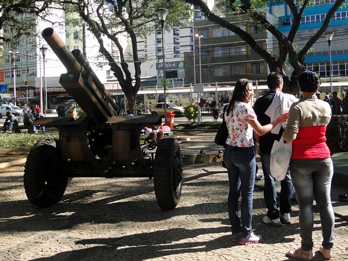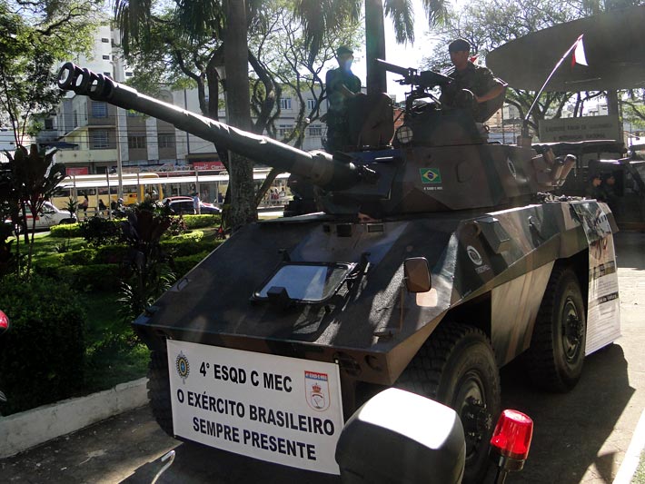 Armas, equipamentos, munição, veículos e vários outros materiais utilizados na defesa do país e em serviços prestados no exterior podem ser observados pelas pessoas que passarem pela Praça do Riachuelo, no Centro de Juiz de Fora, até esta sexta-feira, 24 de agosto (veja galeria de fotos abaixo). O evento, sob a coordenação da 4ª Brigada de Infantaria Motorizada e Guarnição de Juiz de Fora, também apresenta materiais das unidades do Exército de Santos Dumont, São João del-Rei e Petrópolis (RJ). Os objetos ficam expostos das 8h às 16h.