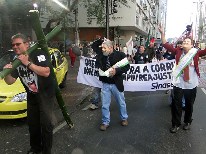 Com faixas, bandeiras e caricaturas de presidenciáveis os manifestantes reivindicaram sobre a atual situação da greve no serviço público federal