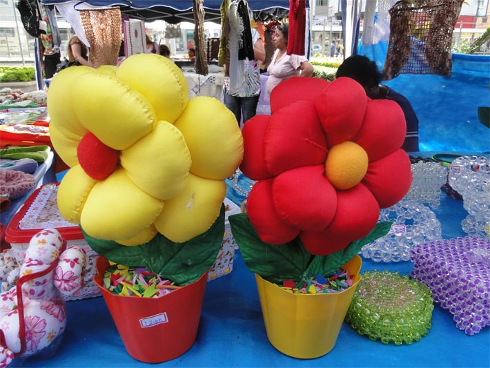 Bonecas, enfeites, sabonetes, tapetes, bijuterias, bolsas, doces e até móveis. Isto é apenas uma pequena parte do que pode ser encontrado na 3ª Feira Municipal de Economia Solidária de Juiz de Fora, que ocorre até quinta-feira, 11 de outubro, na praça do Riachuelo, em frente ao Santa Cruz Shopping, no Centro, das 9h às 18h.