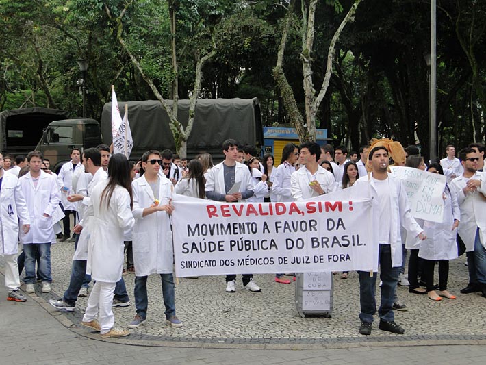 Com apitos, faixas e cartazes nas mãos, os manifestantes percorreram as ruas centrais da cidade pedindo o apoio da população para o movimento intitulado Revalida SIM! "Queremos que as pessoas saibam que o governo Dilma pretende contratar cerca de 6 mil médicos de outros países, sem que eles passem pela prova de avaliação do Conselho Federal de Medicina. Isso além de afrontar a nossa categoria, pode colocar em risco a vida de várias pessoas," destaca um dos organizadores do movimento em Juiz de Fora, o acadêmico da Universidade Federal de Juiz de Fora, Gilberto Ferreira Filho.