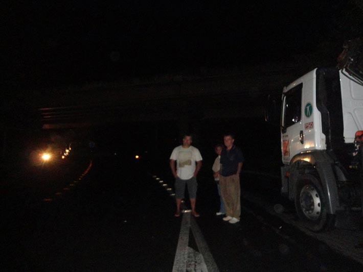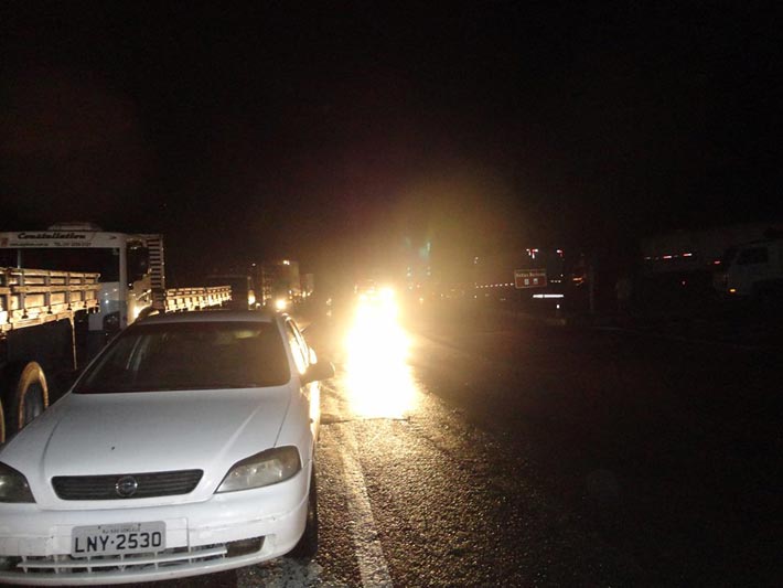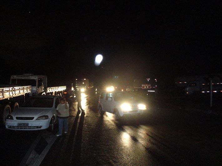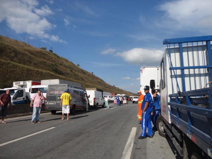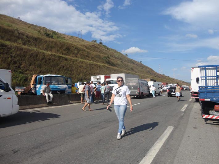 Neste trecho, as duas pistas sentido Rio de Janeiro e Belo Horizonte estão paradas, porém os manifestantes liberaram os acostamentos para o tráfego de carros, ônibus e automóveis de pequeno porte em geral. "Não estamos aqui para prejudicar a população. Apenas queremos que o Brasil entenda os sofrimentos que enfrentamos todos os dias nas estradas deste país," destaca Cesca.