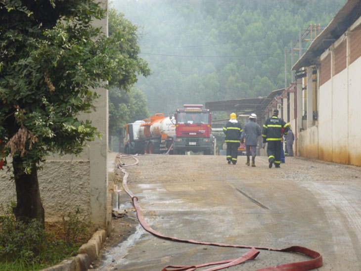 Como o incêndio foi considerado de grandes proporções, duas viaturas de Juiz de Fora deslocaram-se para a ocorrência. Ao todo, foram quatro veículos empenhados e 15 oficiais. Ainda de acordo com os bombeiros, aproximadamente às 04h45, o galpão foi isolado, impedindo a propagação das chamas para outras áreas da indústria. Foram gastos 45.000 litros d'água.