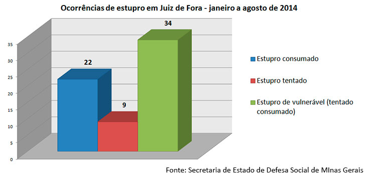 Ao contrário do que foi informado pela Secretaria de Estado de Defesa Social de Minas Gerais (Seds) através de e-mail na última terça-feira, 16 de setembro, o número de estupros consumados em Juiz de Fora, entre janeiro e agosto de 2014, não é 165 casos, e sim, 65. Segundo a Seds, "foram somadas as ocorrências e os envolvidos na ação. Portanto, estamos realizando a correção e pedindo desculpas pelo fato ocorrido. A entrega de informações corretas é compromisso dessa secretaria e dessa assessoria de comunicação. Mas, infelizmente, apesar de grave, o erro aconteceu."
