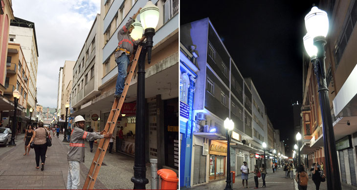 A Prefeitura de Juiz de Fora deu início ao processo de revitalização da iluminação no Calçadão da São João, no centro da cidade, na tarde da última quarta-feira, 1º de abril e já estão em funcionamento.