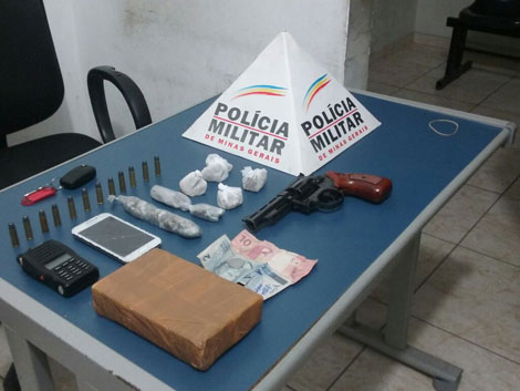 De acordo com informações da assessoria de comunicação da Polícia Militar (PM), o suspeito foi abordado em uma residência na rua São Lourenço. Com ele estavam oito porções de crack, 25 buchas de maconha, uma barra de cocaína pura com aproximadamente um quilo, R$ 12 e um celular, além do revólver calibre .38 com dez munições intactas.