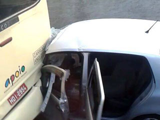 A primeira ocorrência foi registrada na avenida Juscelino Kubitschek (JK), no bairro Benfica, por volta das 5h45. Um carro bateu na traseira de um ônibus urbano, próximo do 27º Batalhão da PM. O carro teve a frente totalmente danificada. O motorista do coletivo informou que estava saindo de um ponto de parada, sentido bairro, quando sentiu a colisão na traseira do veículo.