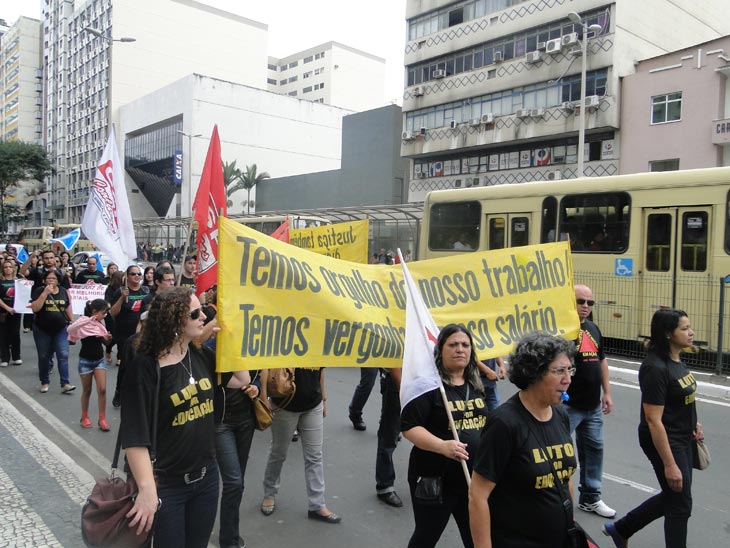 Categoria seguiu em passeata pela avenida Rio Branco e desceu o Calçadão, protestando contra o governador Fernando Pimentel (PT)