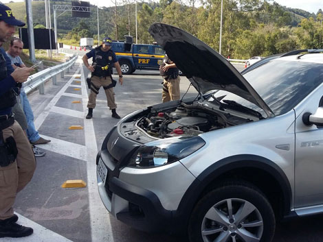 Ao ser consultado no sistema, foi constatado que o carro tem placa de Niterói (RJ), onde foi roubado e estava originalmente registrado. Além disso, o veículo abordado usava placas de um outro modelo do mesmo carro.