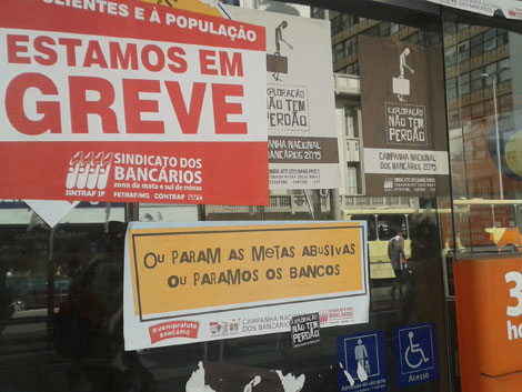 Nesta quinta-feira, 15 de outubro, os bancários do Itaú, Unibanco, Mercantil do Brasil e HSBC cruzaram os braços na luta em apoio ao movimento grevista da Federação Nacional dos Bancos (Fenaban). Neste décimo dia de greve dos bancários, 52 agências de Juiz de Fora e região, entre bancos privados e públicos, paralisaram as atividades, funcionando apenas serviços essenciais. Os postos de autoatendimento continuam operando normalmente.