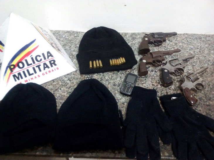 Ainda foram apreendidos mais 11 munições que estavam nas armas, três toucas ninjas e dois pares de luva