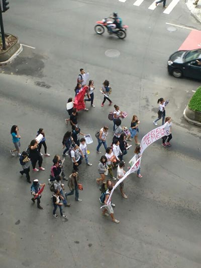 Participante da passeata, a graduanda de serviço social da UFJF Luiza Travassos diz que “a reforma da Previdência será muito ruim para as mulheres, que vão precisar trabalhar mais, e, além disso, cuidar do filho, do lar e servir de apoio moral para a família sem ganhar salário para por essas duplas e triplas jornadas. Estou aqui quanto mulher para protestar contra essa mudança que será pior para nós mulheres”.