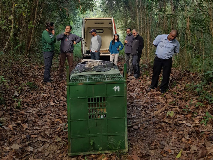 Após ser capturada, a onça-pintada foi levada, na manhã desta segunda-feira, 13 de maio, pelo Instituto Estadual de Florestas (IEF), em uma caixa metálica, forrada com espuma. Conforme a assessoria da Universidade Federal de Juiz de Fora (UFJF), "no trajeto, o felino foi monitorado pelo médico veterinário Paulo Roberto Amaral, do Cenap/ICMBio. Ele foi inserido em uma área florestal ampla, em Minas Gerais, distante de área urbana, com menos riscos de incidentes do que em Juiz de Fora. “Aqui não caberia outro indivíduo. Na nova área, existem um macho e três fêmeas. Assim temos a possibilidade de reprodução. Ele é essencial para a espécie”, explica o professor Fernando Azevedo. Sobram menos de 300 onças-pintadas vivendo em Mata Atlântica. O nome do local está mantido em sigilo a pedido da área florestal que irá recebê-lo. Confira as fotos de Raul Mourão.