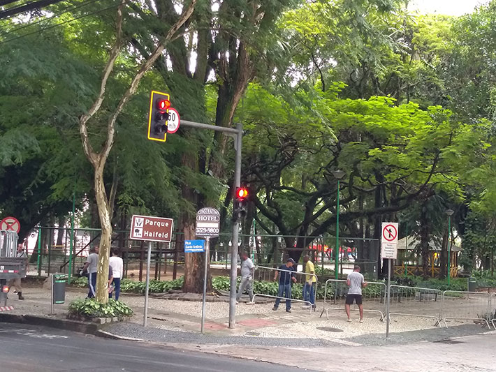 O Parque Halfeld amanheceu fechado com gradis neste sábado, 21 de março, por tempo indeterminado. A medida foi tomada pela Prefeitura de Juiz de Fora para impedir quaisquer atividades, a fim de evitar aglomerações como prevenção da Covid-19. Mesmo após o decreto do prefeito Antônio Almas, na quarta-feira, 18, o local continuo sendo ponto de encontro, inclusive de idosos, acostumados a realizar atividades de lazer.