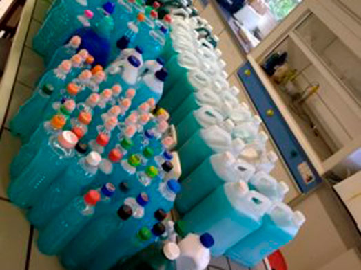 Produzido pelo Departamento de Química da UFJF, os produtos são distribuídos gratuitamente para pessoas em condição de vulnerabilidade. É necessário que as garrafas pet doadas estejam em condições de uso e acompanhadas de tampas.