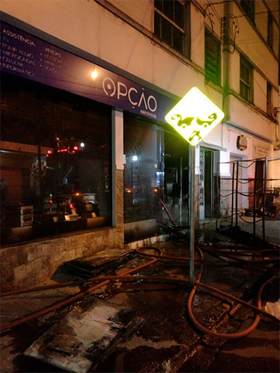 Uma loja de manutenção e venda de eletrodomésticos pegou fogo na madrugada desta sexta-feira, 6 de agosto, na Rua Batista de Oliveira, no Centro de Juiz de Fora, segundo informações do Corpo de Bombeiros. O incêndio foi extinto pelas guarnições dos Bombeiros e após a atuação, foi feita uma vistoria na estrutura do prédio, não sendo constatada nenhuma anomalia ou sinal de enfraquecimento da estrutura.