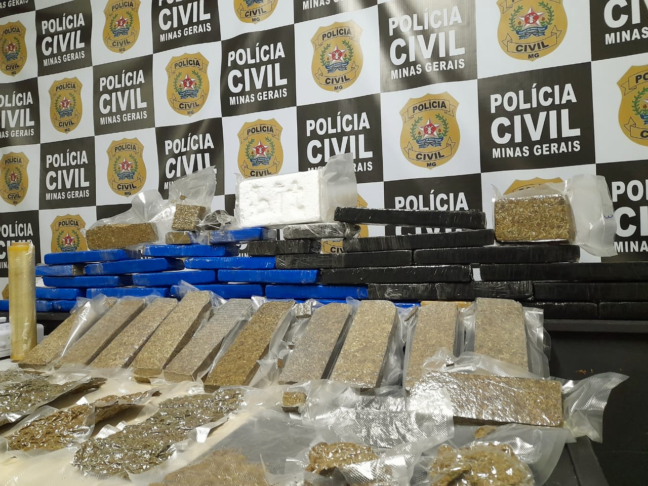 Durante a ação, em um imóvel em construção onde os investigados armazenavam a droga, também foram apreendidos 45 barras de maconha, sete porções e dois tabletes da mesma droga, uma porção de haxixe, uma barra de cocaína, três balanças de precisão, três seladoras, uma porção de cocaína em pedra e uma bola de haxixe.
