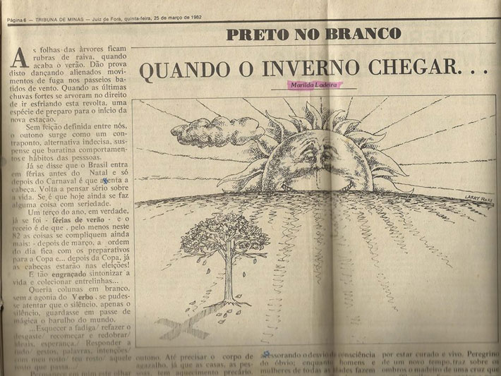 Essas crônicas dizem muito da minha relação com as coisas e com essa parte da censura cobrindo o período dos anos oitenta. José Luiz Ribeiro disse que esse livro vai marcar a história, pois dou os caminhos para a pesquisa. Ele foi meu professor de português na faculdade e me marcou muito.
