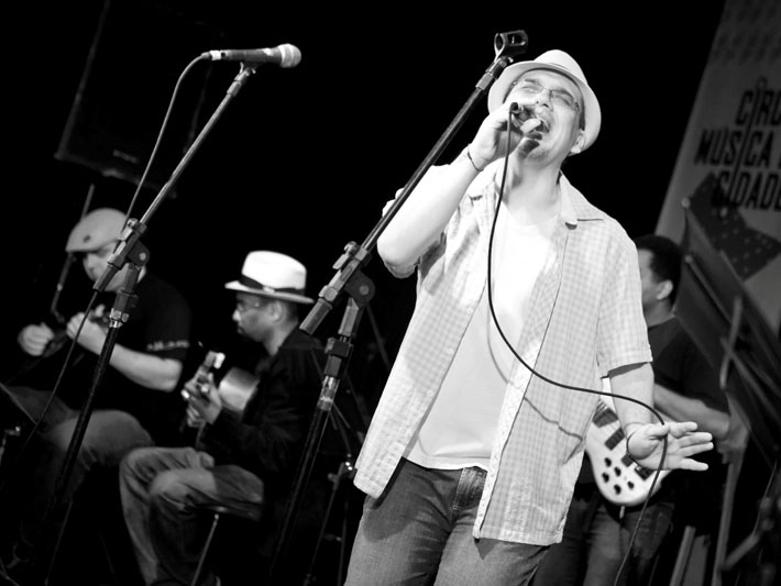 Cantava imitando o Robert Plant, fazendo aqueles falsetes dele. Eu era cabeludo. Quando entrei para a UERJ em 1989 para fazer Educação Física .conheci um núcleo de folclore e cultura popular na universidade e comecei a participar. Comecei a fazer samba, maracatu, frevo e fui me apaixonando por isso.