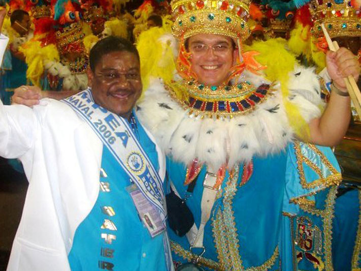 Carlos Fernando: Nessa época meu pai era portelense doente e minha mãe mangueirense mais doente ainda, acabei me tornando Império Serrano para não causar briga com nenhum dos dois. Era a terceira força da época. Mangueira, Portela e Império. Em 84 assisti a um desfile da Vila Isabel pela televisão que muito me tocou. O enredo falava sobre os trabalhadores do carnaval, chamava-se "Para tudo se acabar na quarta feira". Me lembro de que o samba era de Martinho da Villa e ele vinha num carro alegórico representando Tom Jobim. Imagina um negro fazendo o Tom.