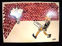 Já o segundo lugar do concurso (foto ao lado) ficou mesmo em casa e foi conquistado pelo ilustrador juizforano Mário Luis Tarcitano Guimarães, que vai levar R$ 1.000. Com a política como tema, a charge segue a linha do chamado "humor ácido". O autor concorda que a obra não precisa ser descrita para ser compreendida. "Quando um cartunista sintetiza uma ideia complexa em uma única imagem, sem usar texto, aí reside o seu mérito e, até mesmo, se a ideia for boa, o motivo do destaque da charge."