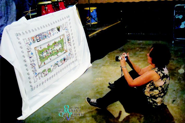 O ponto inicial foi dado por Ligia Quaglio, como ressalta Abritta. "Não sabia nada sobre a arte do ponto cruz. Então, contei com a ajuda da minha companheira Ligia, que me ensinou tudo sobre bordado. Inclusive foi ela quem deu vida a minha história, bordando os personagens, e fazendo com que a narrativa se materializa-se em uma tela de 1,30m x 1,00m," afirma Abritta, lembrando ainda que a obra contou com o apoio e a admiração de outras pessoas, entre fotógrafos, narradores e as bordeiras Josemira Correia e Ligia Maria Soares.