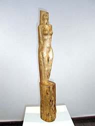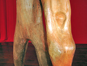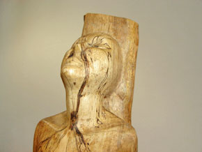 Como a intervenção é pouca, as peças apresentam muitas características da própria madeira, que dão efeitos inesperados às obras. "Numa delas, a ação de fungos formou lágrimas descendo do rosto da moça. Em outra, cupins deram um umbigo à barriga da mulher. Numa terceira, uma rachadura delineia exatamente a curvatura da coluna cervical de uma menina."