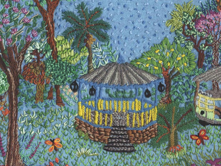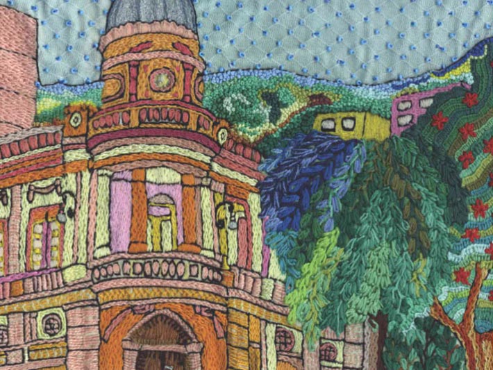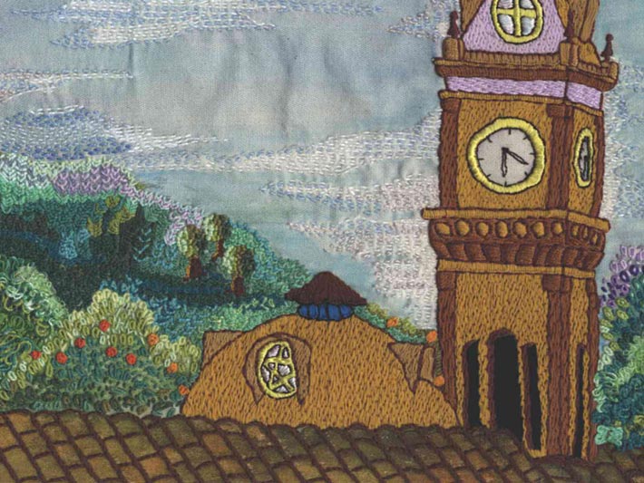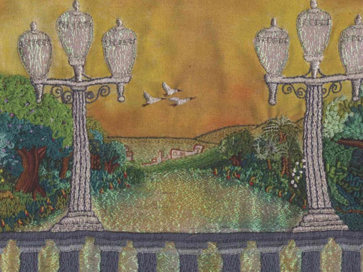 - Abril: Parque Halfeld, bordado de Lúcia Rosa Martins;