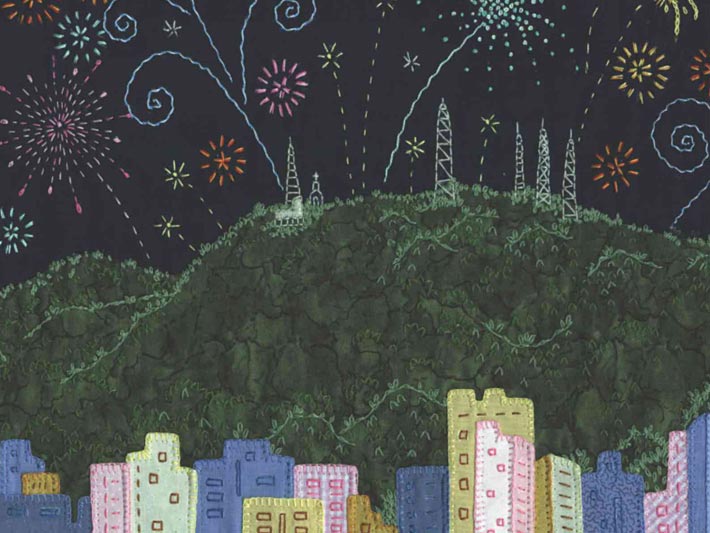 - Janeiro 2014: Fogos no Morro do Cristo – bordado de Lúcia Rosa Martin