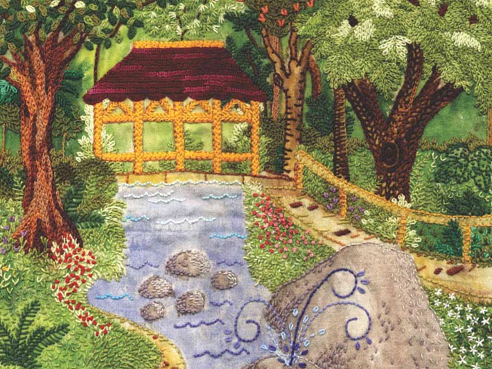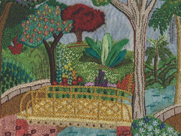 - Março: Ponte no Parque do Museu Mariano Procópio – bordado de Maria Izabel Fraga da Rocha;