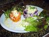 r?cula, alface americana, tomates s?cos, cr?utons, lascas