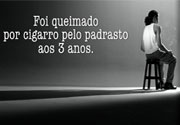 para 0800 31 11 19 Foto do cartaz da campanha 'Proteja nossa crian?as em caso de viol?ncia denuncie' Foto do v?deo com um menino de costas, sentada em uma cadeira, com a frase na tela: foi queimado com cigarro