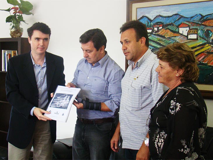 A comissão de Defesa dos Direitos dos Idosos da Câmara Municipal entregou, nesta quarta-feira, 9 de janeiro, ao prefeito Bruno Siqueira (PMDB) o Diagnóstico Socioeconômico da População Idosa de Juiz de Fora (foto acima). O relatório, elaborado pela Universidade Federal de Juiz de Fora (UFJF) contou com a participação de dois sociólogos, quatro professores e 35 estudantes que aplicaram um questionário a 282 idosos, residentes em 33 bairros da cidade. Após receber o documento, Siqueira afirmou que irá entregá-lo ao secretário de Governo, José Sóter Figuerôa. "Após analisarmos este documento, a Prefeitura irá verificar as prioridades de médio e longo prazo, para então buscarmos recursos que nos auxiliem a assegurar o direito dos idosos."