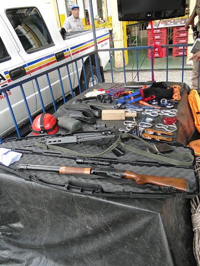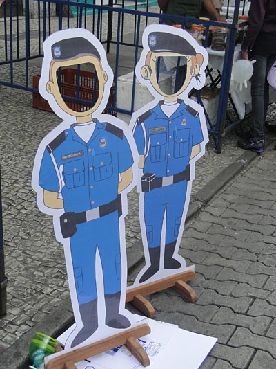 Esse aproximação se confirma ao perceber que os dois estandes da Polícia atraíram muitos interessados. No do 4º Corpaer, responsável pelo patrulhamento aéreo, foram expostos equipamentos de salvamento aquático e um vídeo com ações dos helicópteros da PM. Já o da 4ª Companhia da Polícia Militar Independente de Meio Ambiente e Trânsito Rodoviário trouxe animais da fauna local empalhados e uma atração que chamou muito a atenção: uma cobra cascavel viva, de cerca de 1,5 metros.