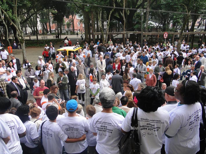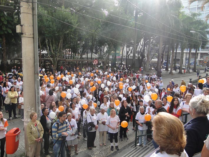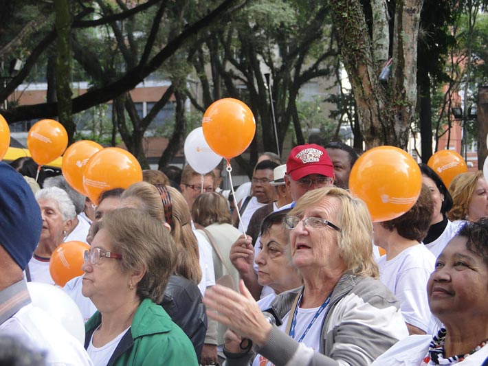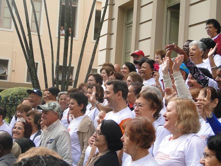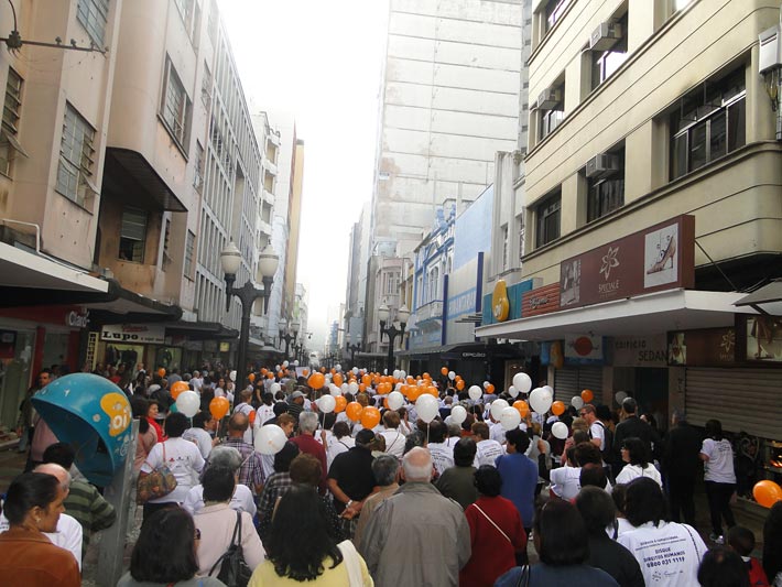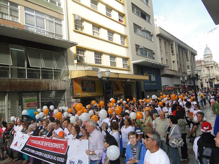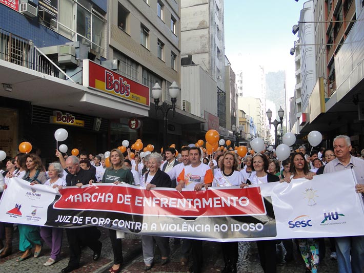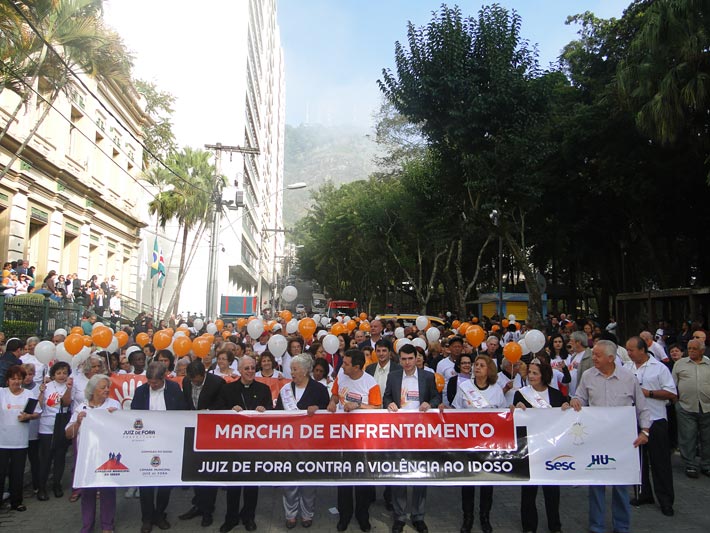 A passeata desta quarta-feira contou com a presença de várias autoridades, que discursaram na escadaria da Câmara Municipal. Do Parque Halfeld, a partir de 8h30, o grupo seguiu caminhando até a Praça da Estação. Por todo o Calçadão, idosos carregavam balões, sopravam apitos e cantavam, atraindo a atenção tanto dos mais jovens, para que se conscientizem do problema, quanto dos mais velhos. Muitos se juntaram à marcha no meio do caminho.