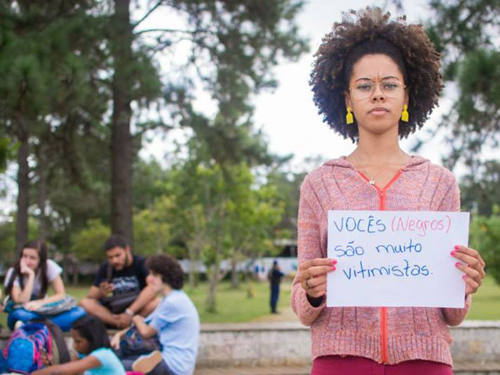 Paula conta que entre as estudantes, por exemplo, critérios de beleza são associações racistas muito comuns, como falar do cabelo crespo ou traços 'mais finos'. Moreira explica que devido toda a carga histórica de miscigenação no Brasil, o racismo está associado a cor da pele e não etnia, diferente dos Estados Unidos, que esta diferenciação é bem explícita. "O próprio tratamento ideológico sobre o assunto na nossa sociedade enfraqueceu a luta. Simbolicamente a cor negra se tornou algo negativo, tornando-se comum piadas e expressões racistas o dia a dia das pessoas."