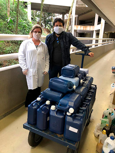 O Projeto Divulga Química, do Instituto de Ciências Exatas (ICE) tem sido outro parceiro importante, com a fabricação de álcool em gel, sabão e sabonete líquido. “Eles recolhem óleo e garrafas pet , depois fazem a higienização dos vasilhames e produzem o material”.