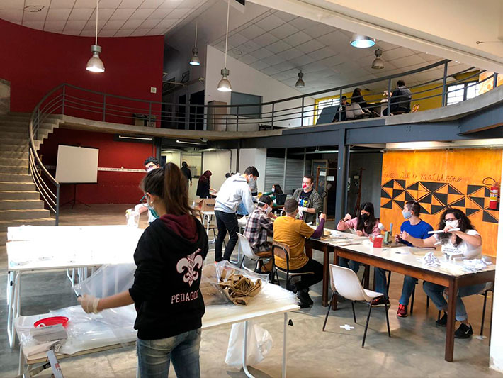 Depois do primeiro passo, a voluntária já estava em grupos de WhatsApp nacionais com foco na prevenção, foi aí que ela entrou em contato com um grupo da UFJF. “Eles me chamaram no privado e conversamos sobre os protetores faciais (face shield) que poderiam ser feitos e iniciamos a produção com recursos próprios. Porém, a ação ganhou forças e a UFJF abraçou a causa doando os materiais. Com isso, hoje temos diversos colaboradores atuando nessa produção”, diz.