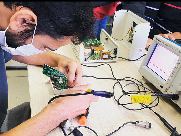 O protótipo foi desenvolvido pelo Grupo de Robótica Inteligente (GRIn) da UFJF em parceria com a Faculdade de Arquitetura e Urbanismo. De acordo com o professor e orientador do grupo, Leonardo Honório, o modelo agiliza o processo de produção quando comparado com a fabricação por impressoras 3D. “A partir do primeiro protótipo utilizando impressoras 3D vimos a inviabilidade da produção em larga escala, pois levava de duas a três horas para produzir uma peça. Então, mudamos o projeto para utilizar a máquina de corte a laser que é muito mais rápida”. A média de produção é de 300 unidades do equipamento de proteção individual por dia.
