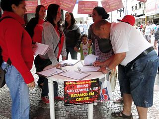 Em greve, professores municipais recolhem assinaturas pelo cumprimento da Lei do Piso