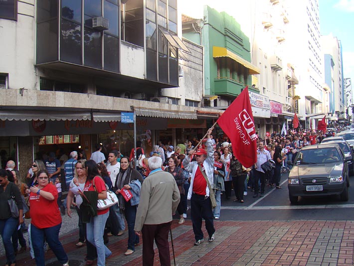 Após a assembleia, os professores realizaram mais uma passeata pelas ruas centrais da cidade. Com bandeiras e faixas, os docentes seguiram um caminhão de som, que exibia um vídeo cedido pelo Portal ACESSA.com, o qual foi gravado durante a campanha eleitoral de 2012. De acordo com a assessoria do Sinpro-JF, em três dias, o vídeo já teve mais de 27 mil acessos na página da rede social da categoria.
