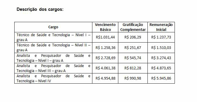Das 159 vagas ofertadas, 40 são para nível médio, 52 para o nível médio com formação de curso técnico, 61 para o nível superior, duas para o nível superior cumulado com pós-graduação lato sensu e quatro para o nível superior cumulado com pós-graduação (stricto sensu – mestrado). Importante ressaltar que a remuneração inicial é composta por Vencimento Básico acrescido de Gratificação complementar e de Gratificação de Incentivo e Eficientização dos Serviços (GIEFS).