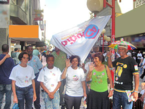 Segundo o ex-presidente do PT, Chico Oliveira, aproximadamente 500 pessoas em Juiz de Fora trabalham na campanha, sem nenhuma remunera??o. "Estamos adesivando os juizforanos que ap?iam a Margarida e a aceita??o ? positiva. As pessoas pedem o material".