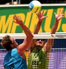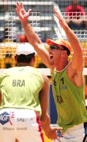 Enquanto Nalbert e Luiz?o se preparam para entrar em quadra, as emo?es j? come?aram, com a disputa da fase eliminat?ria. Nos primeiros jogos do dia, no masculino e no feminino, disputas equilibradas. A primeira entre as mulheres, por exemplo, foi entre a dupla Nina e Cris, contra Tania e Ivanise. A vit?ria foi da primeira, formada por uma carioca e uma paulista. Elas venceram um jogo apertado, por dois sets a um, parciais de 16/18, 18/16 e 15/12.
