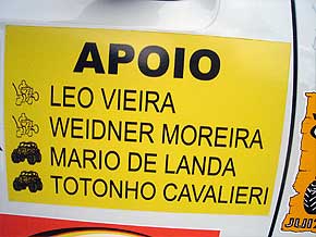 Leonardo Vieira Franco e Weidner Moreira disputam a prova nos quadriciclos. J? a dupla Mario C?sar de Landa Moraes e Luiz Antonio Cavalieri fazem o percurso na categoria 4x4, nos carros. Eles t?m o aux?lio do mec?nico Fl?vio Bisi e de Marcelo Toneli e Willian Werneck na equipe de apoio.