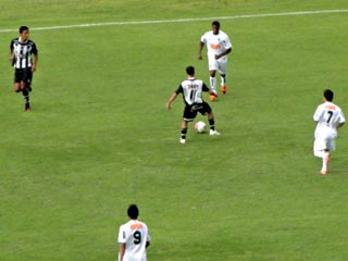 O primeiro tempo foi disputado, mas o Tupi conseguiu mais chances de gol. Primeiro, o atleticano Escudero arriscou por cobertura e arrancou grande defesa de Rodrigo. Logo em seguida, o atacante Allan ajeitou para Léo Salino, que não conseguiu finalizar e aos 14 minutos, em grande jogada de Allan e Ademilson, o Tupi quase mandou a bola para a rede.
