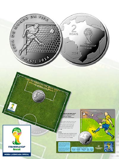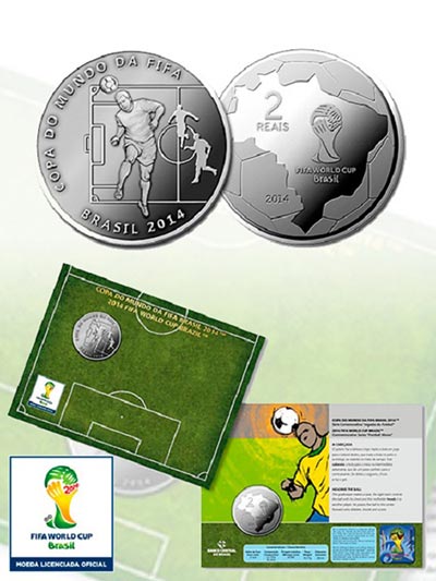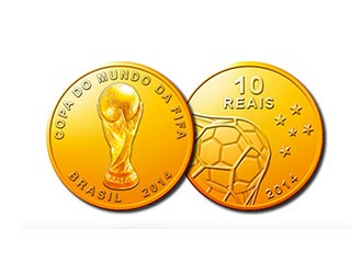 O Banco Central e a Casa da Moeda lançaram nesta quinta-feira, 30 de janeiro, nove moedas comemorativas da Copa do Mundo, que será disputada de 12 de junho a 13 de julho deste ano, em 12 capitais brasileiras. A coleção, que marca a vigésima edição da Copa do Mundo de Futebol, é formada por 22.120 moedas, das quais 2.720 em ouro, 12 mil em prata e 7,4 mil de cuproníquel, que foram disponibilizadas à venda, em dinheiro, logo depois da cerimônia, na sede do Banco Central, em Brasília.
