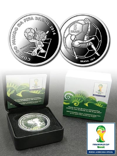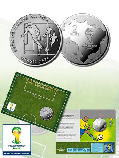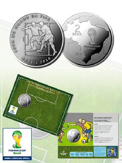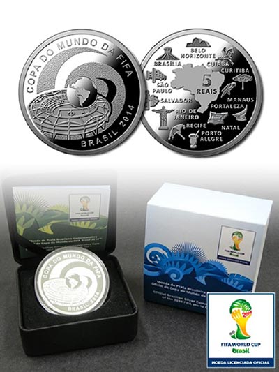 As duas moedas de prata têm valor de face de R$ 5 e peso de 27 gramas e custam para o colecionador R$ 190. Ambas fazem alusão à Copa do Mundo, de um lado, mas, no verso, enquanto uma apresenta o mascote oficial, com desenho do tatu estilizado, a outra traz um mapa do Brasil com indicação das 12 cidades-sede da competição.